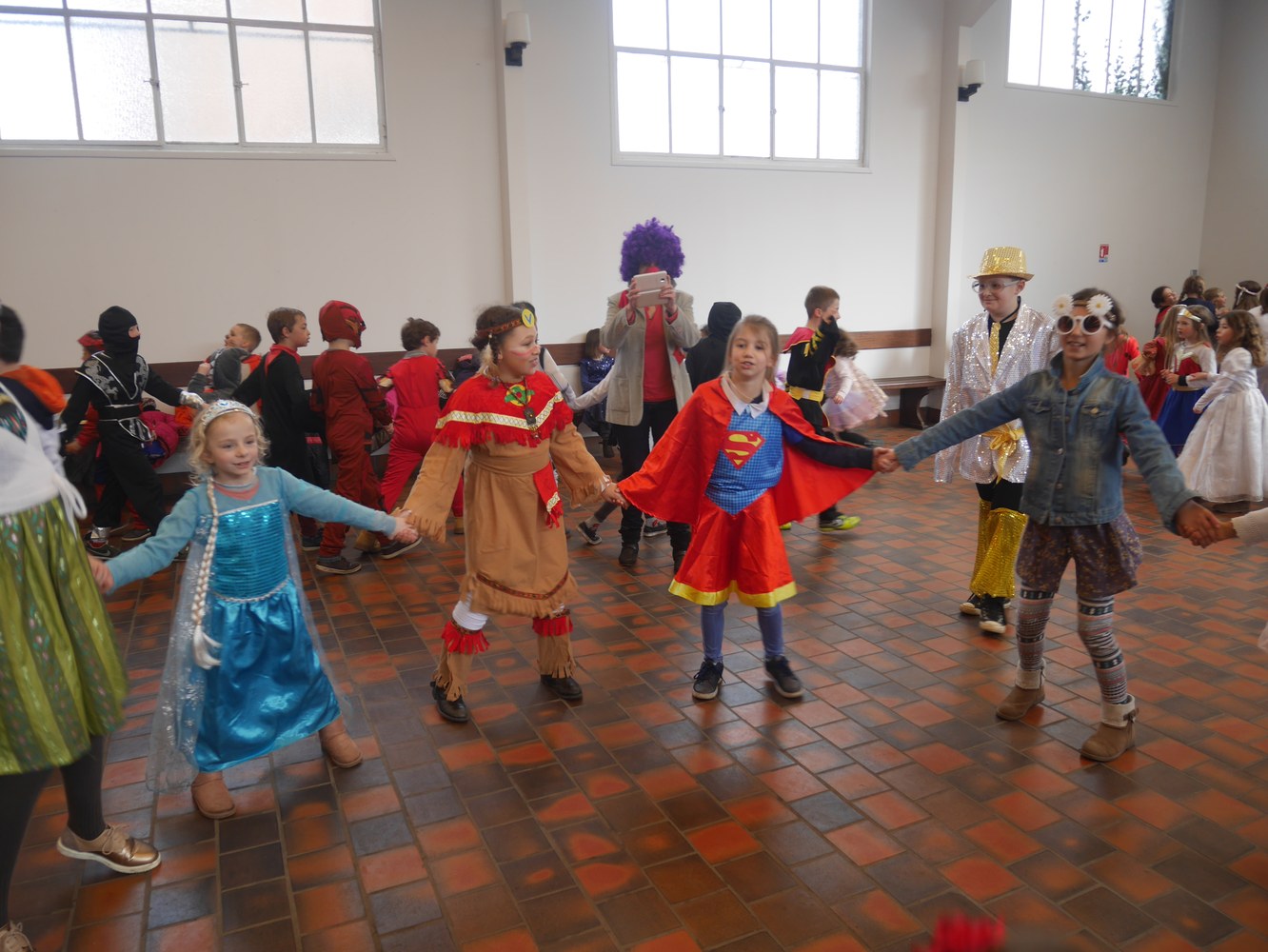 Cette année, les enfants et les adultes de l'école se sont costumés pour fêter Mardi-Gras.