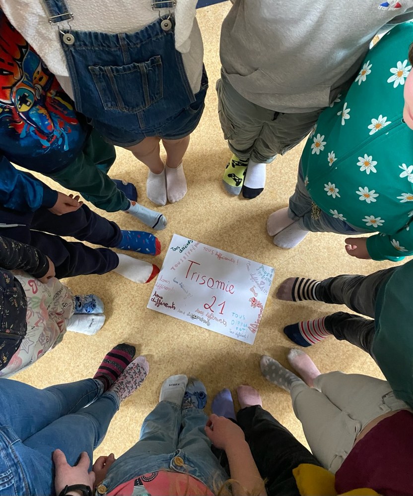 Le 21 mars est la journée mondiale de la trisomie. En hommage à cette journée, les CE2 sont venus en classe avec des chaussettes dépareillées.