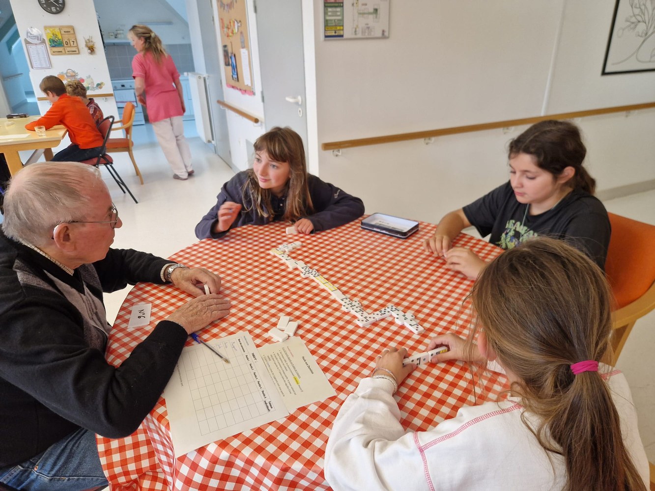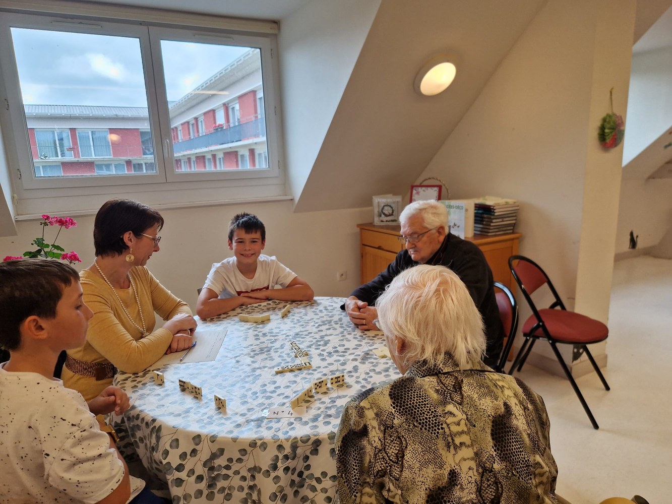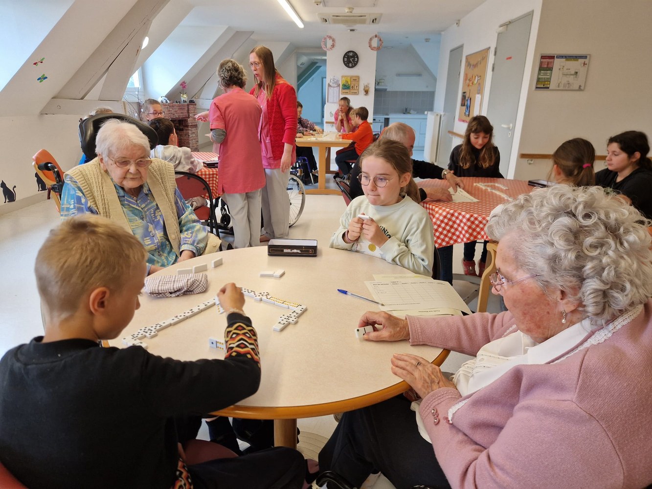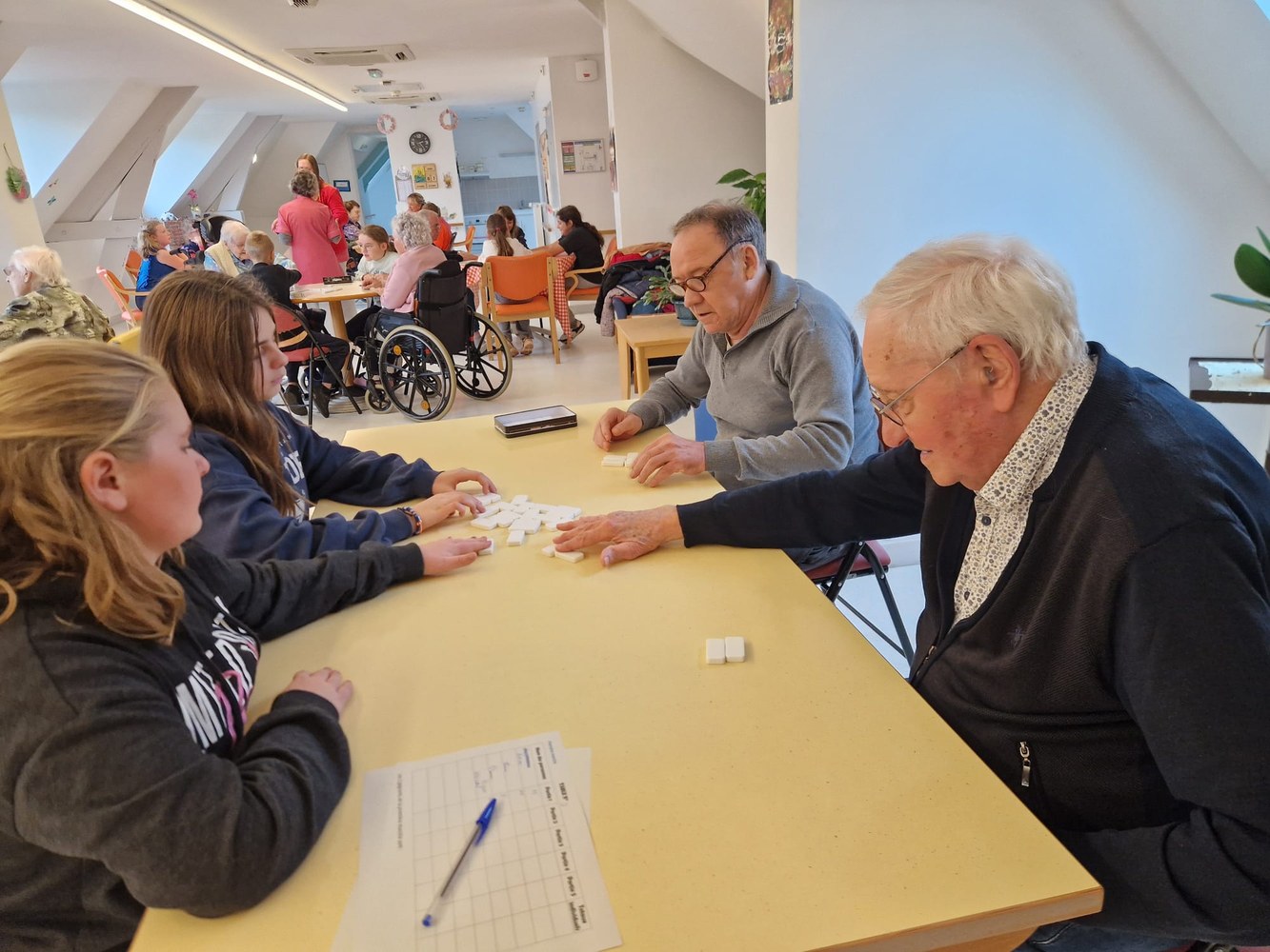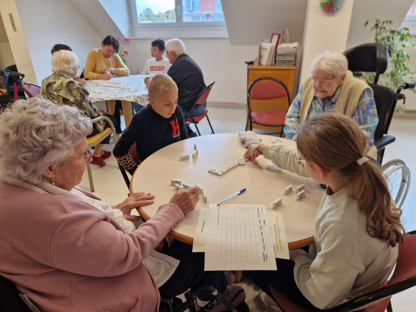 Une poule aux dominos avec les résidents de l'EHPAD