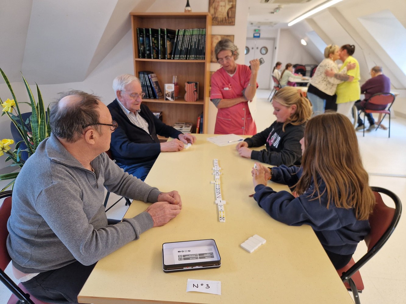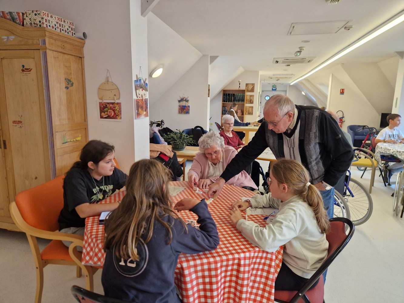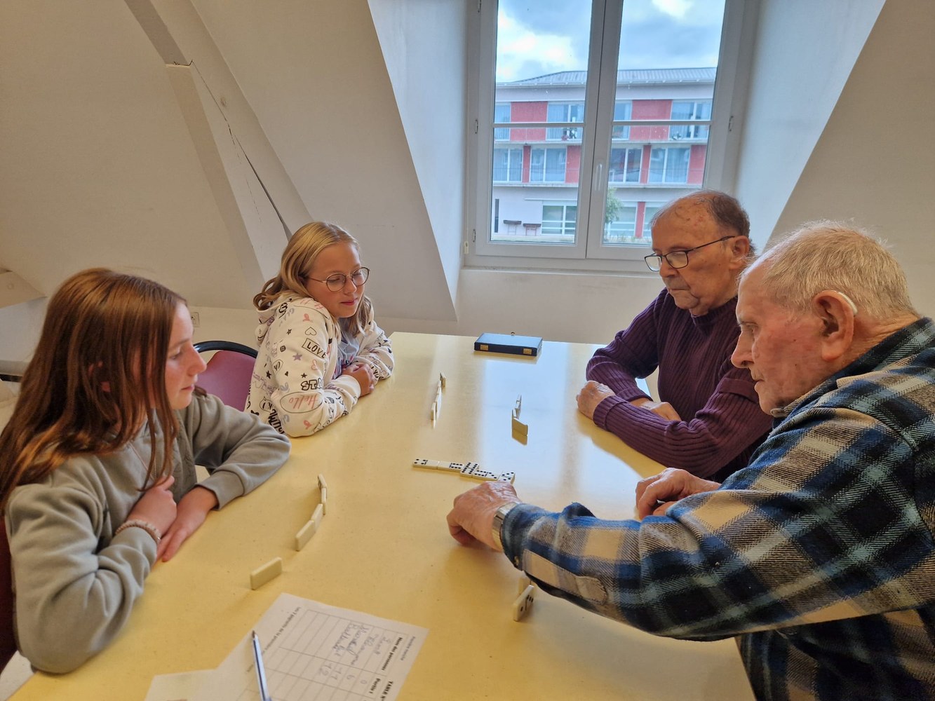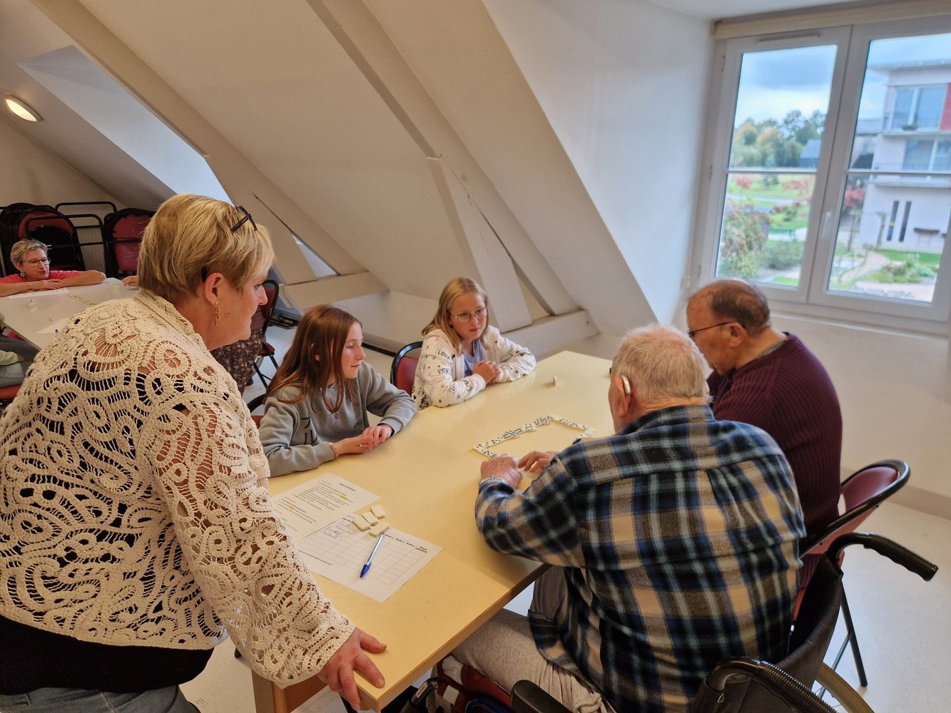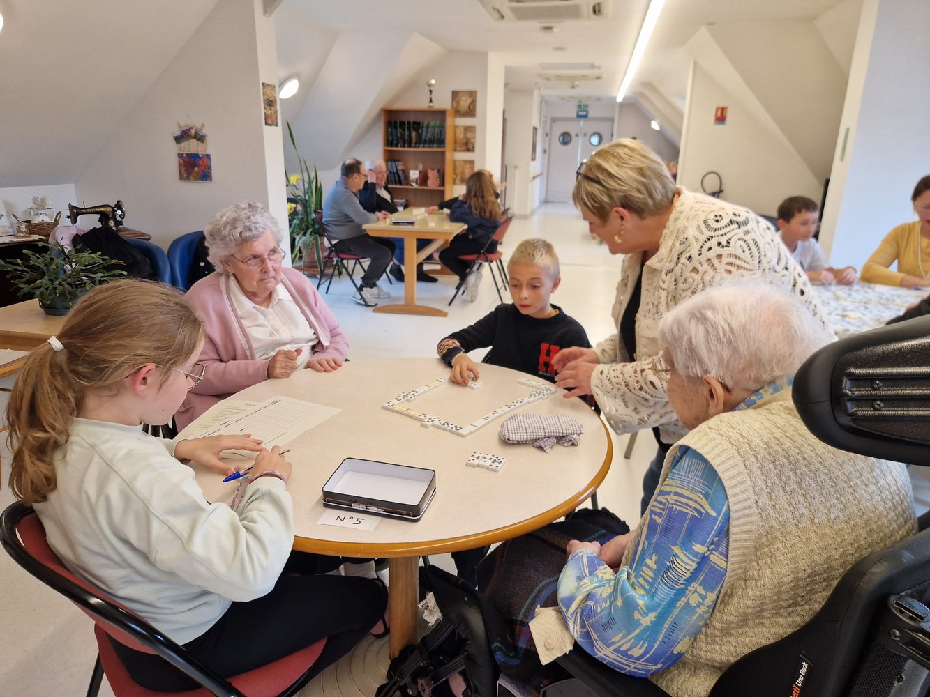 Une poule aux dominos avec les résidents de l'EHPAD