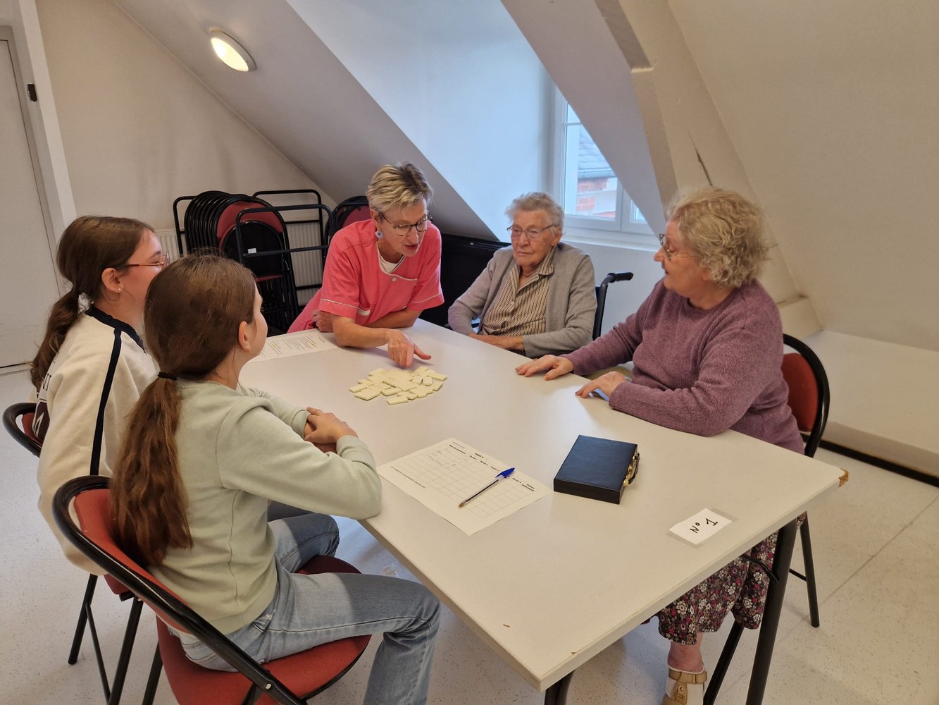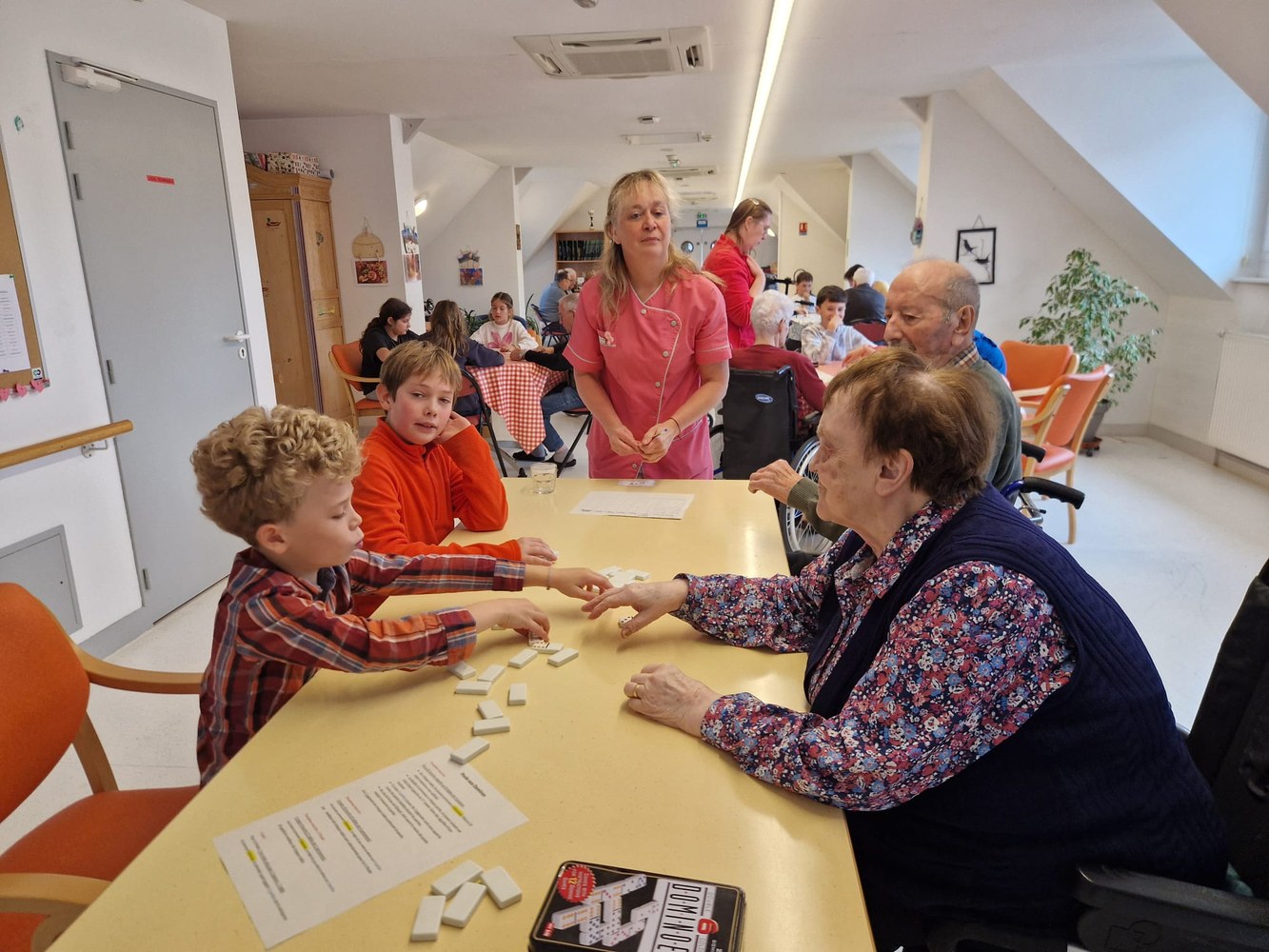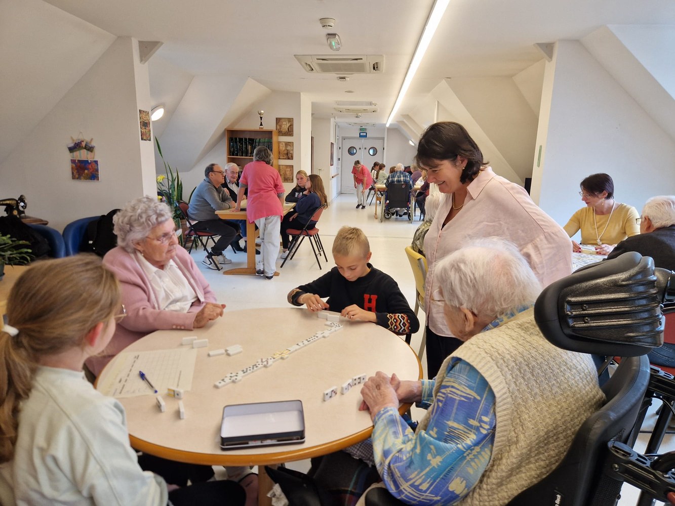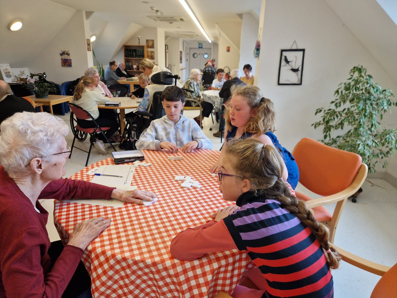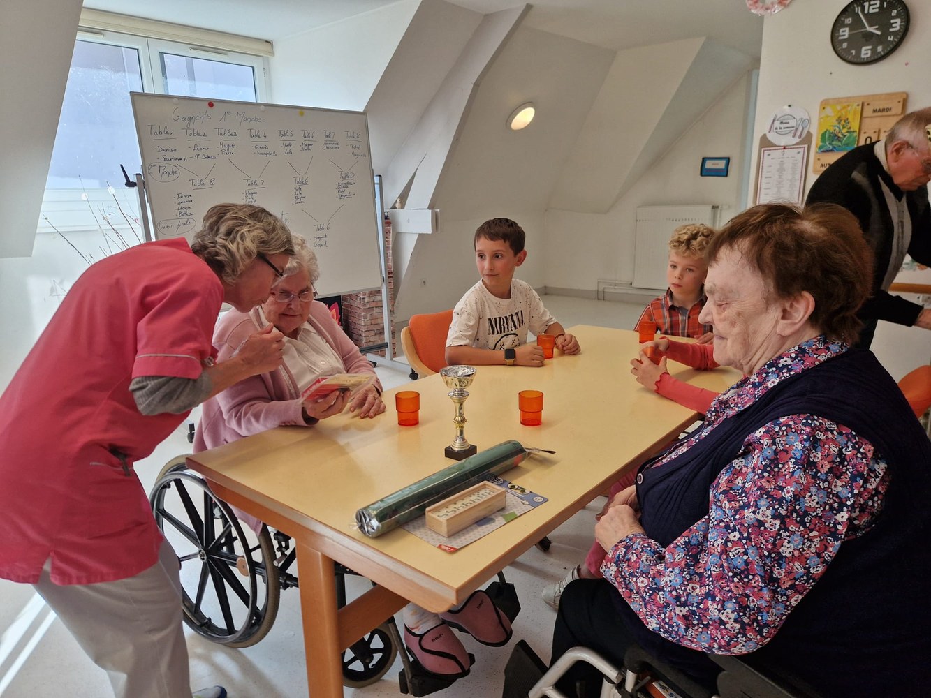 Une poule aux dominos avec les résidents de l'EHPAD