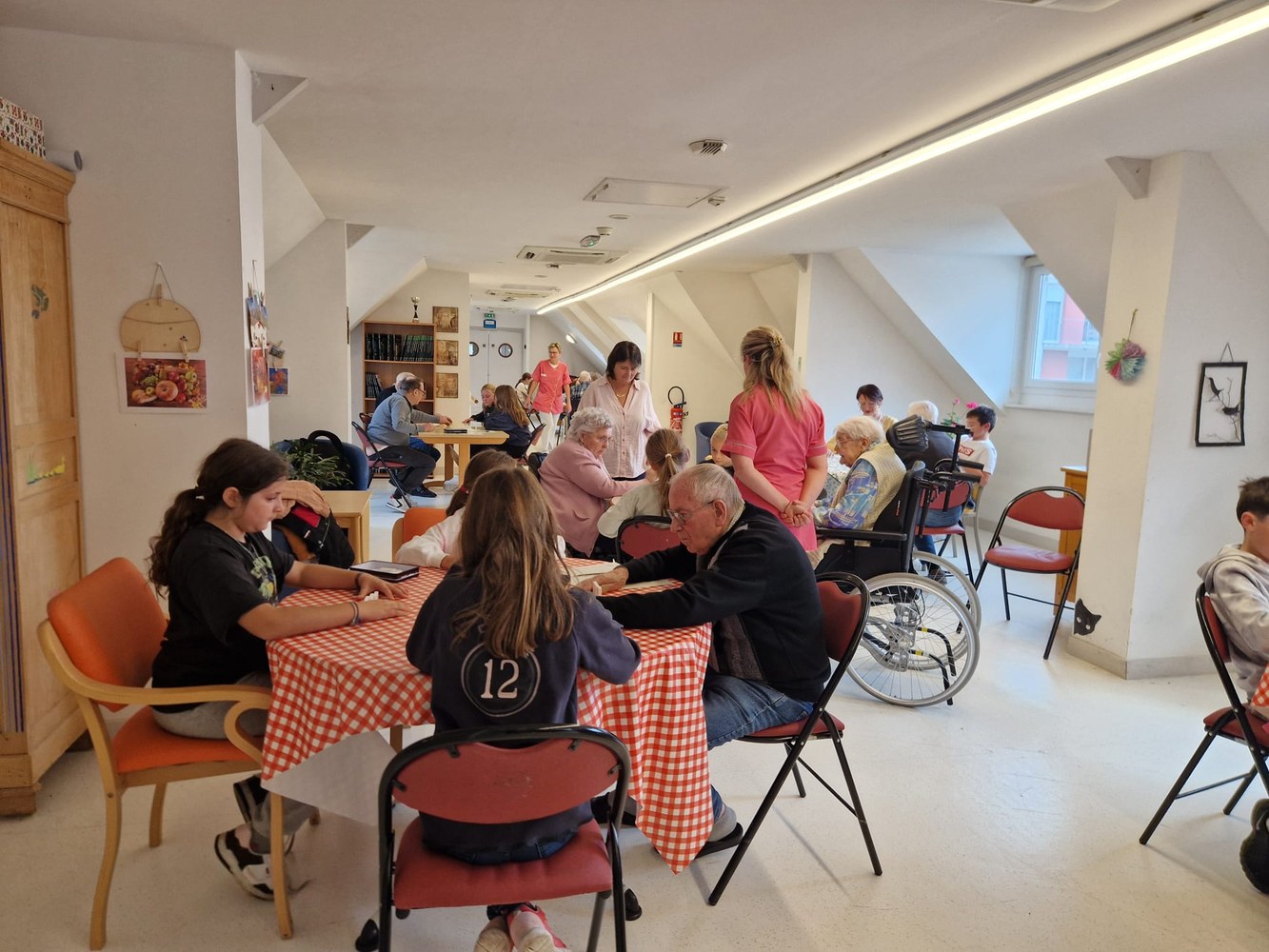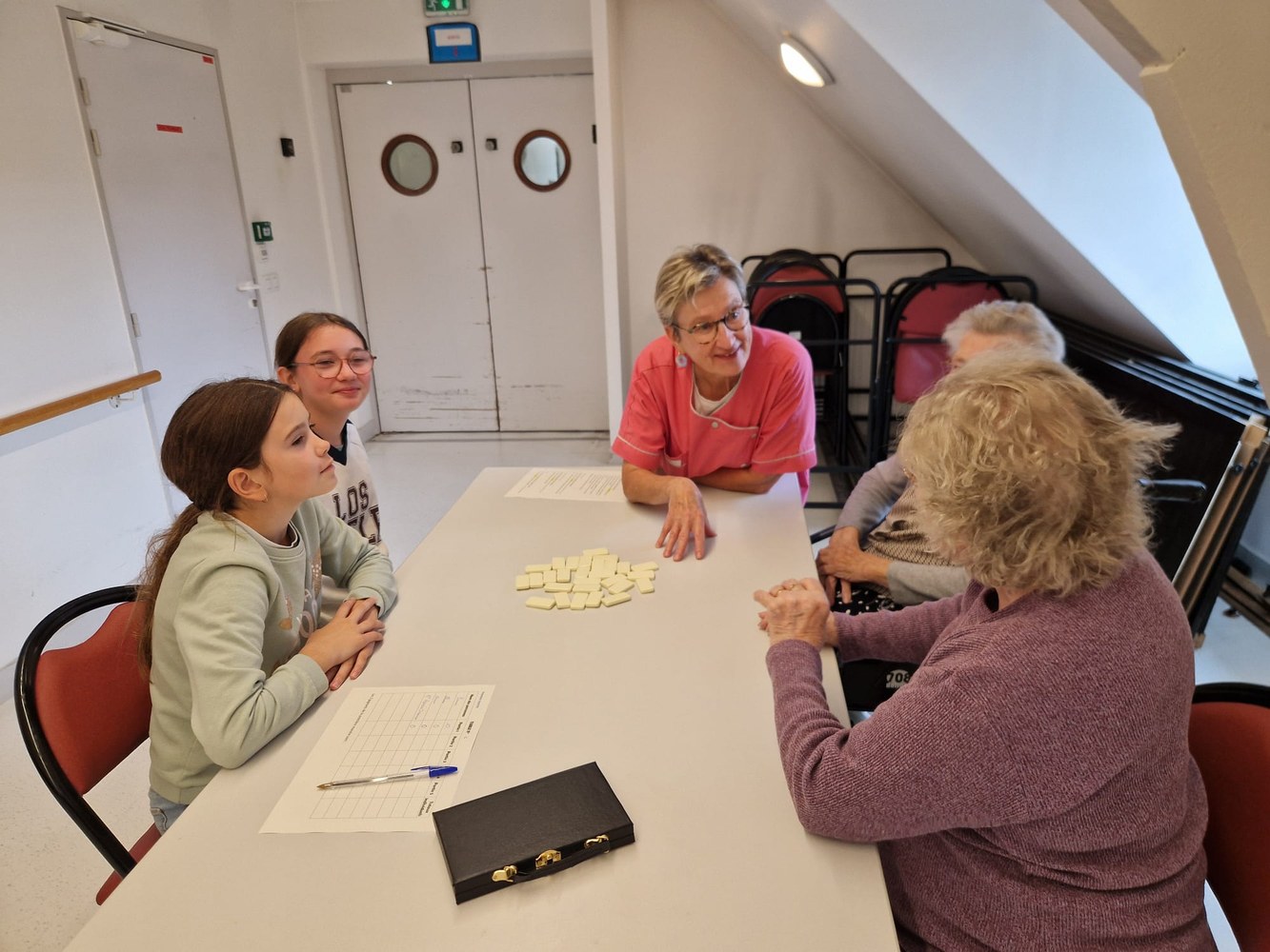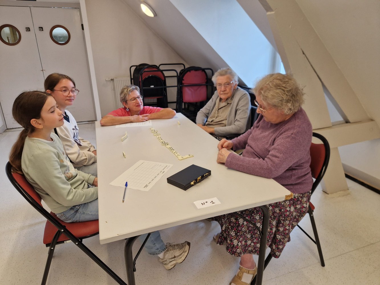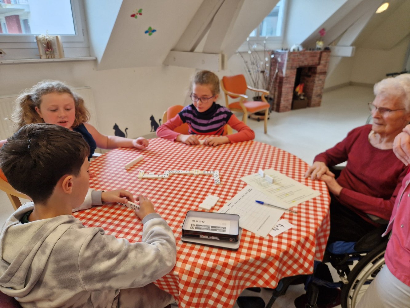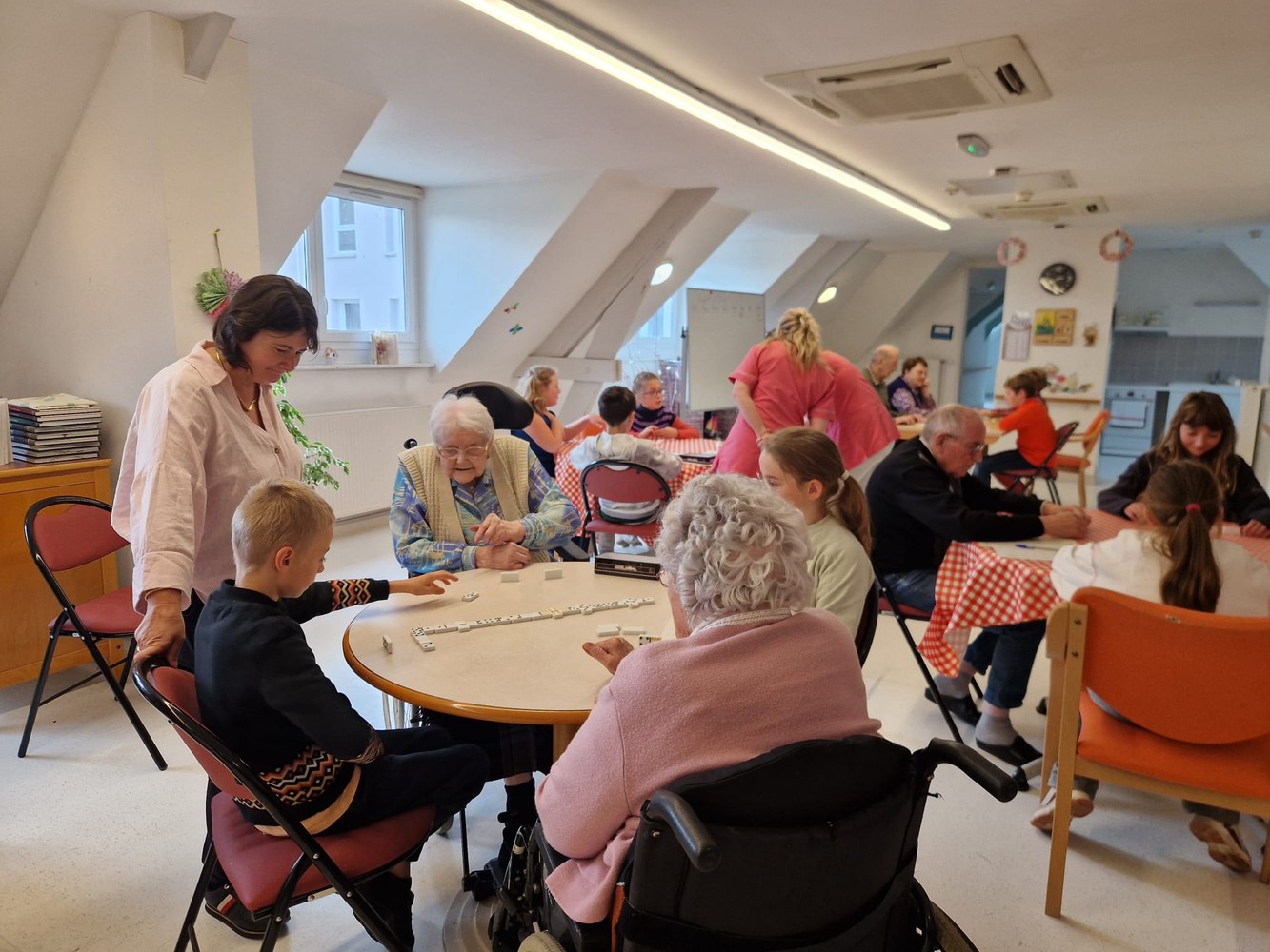 Une poule aux dominos avec les résidents de l'EHPAD