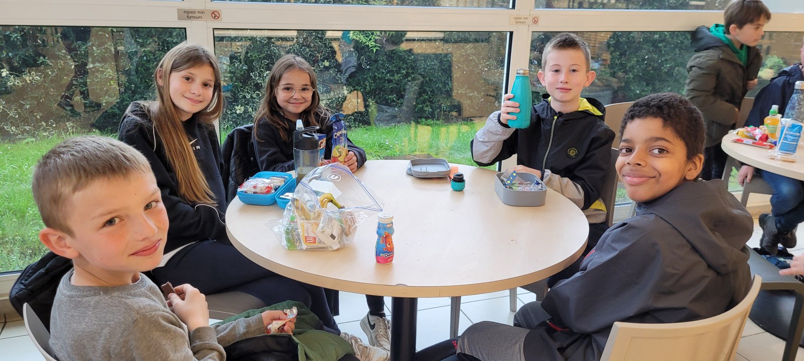 Un moment de récréation, les animatrices et le chauffeur de car