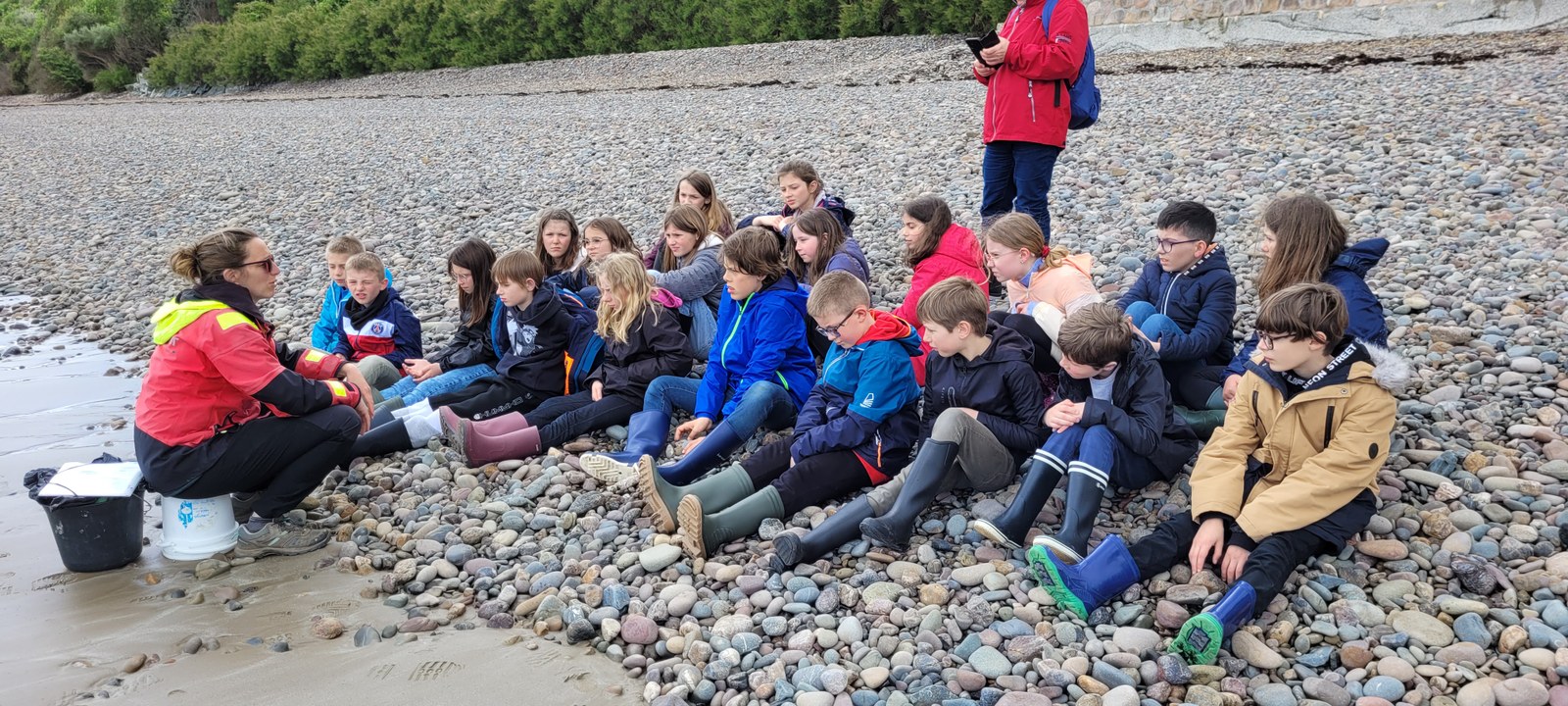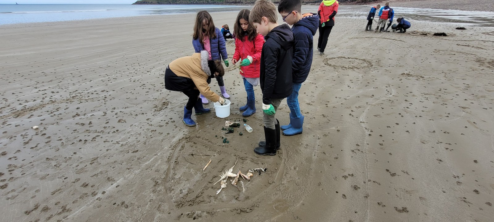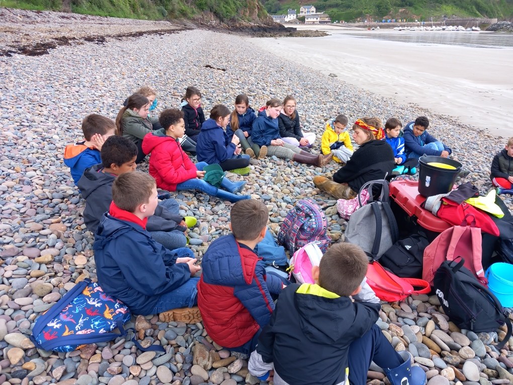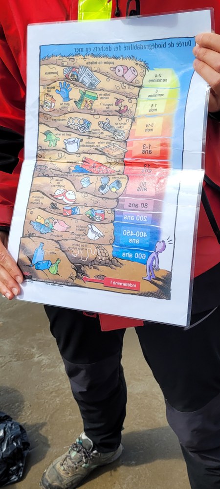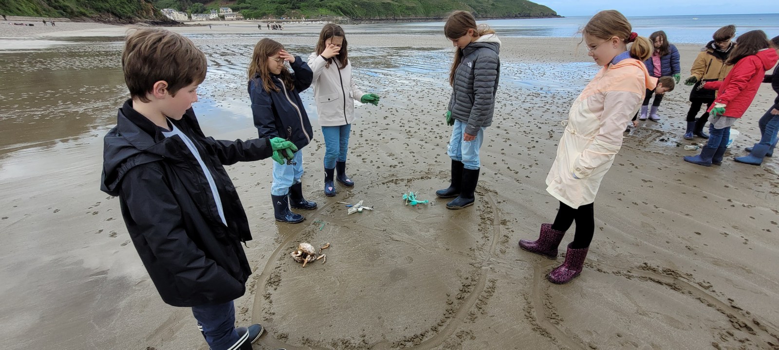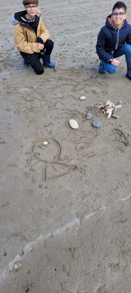 Lors de cet après-midi, les enfants ont découvert la "laisse de mer", c'est à dire les déchets laissés sur la plage par la marée. Ils ont trié les déchets (déchets animaux, végétaux, produits par l'homme...) Ils ont aussi évoqué le temps de dégradation des déchets.