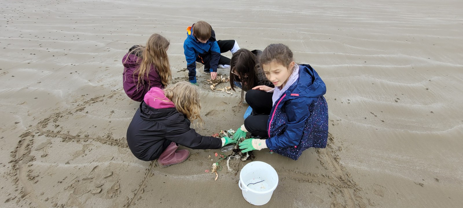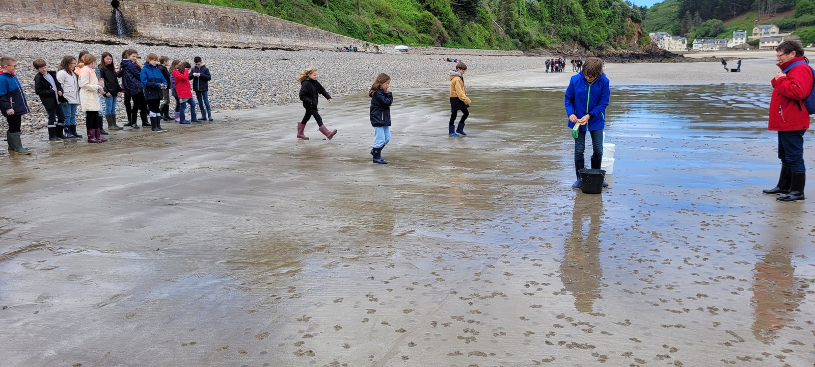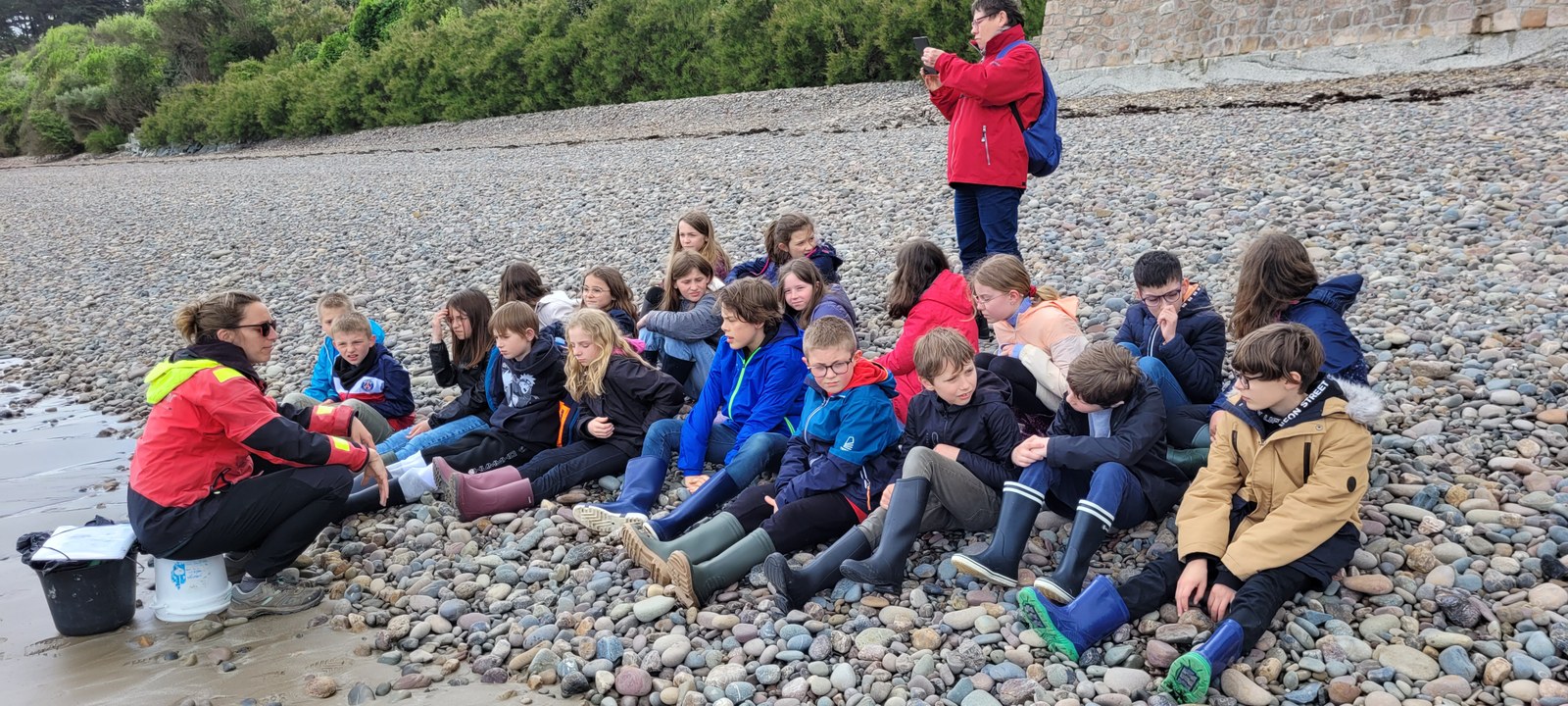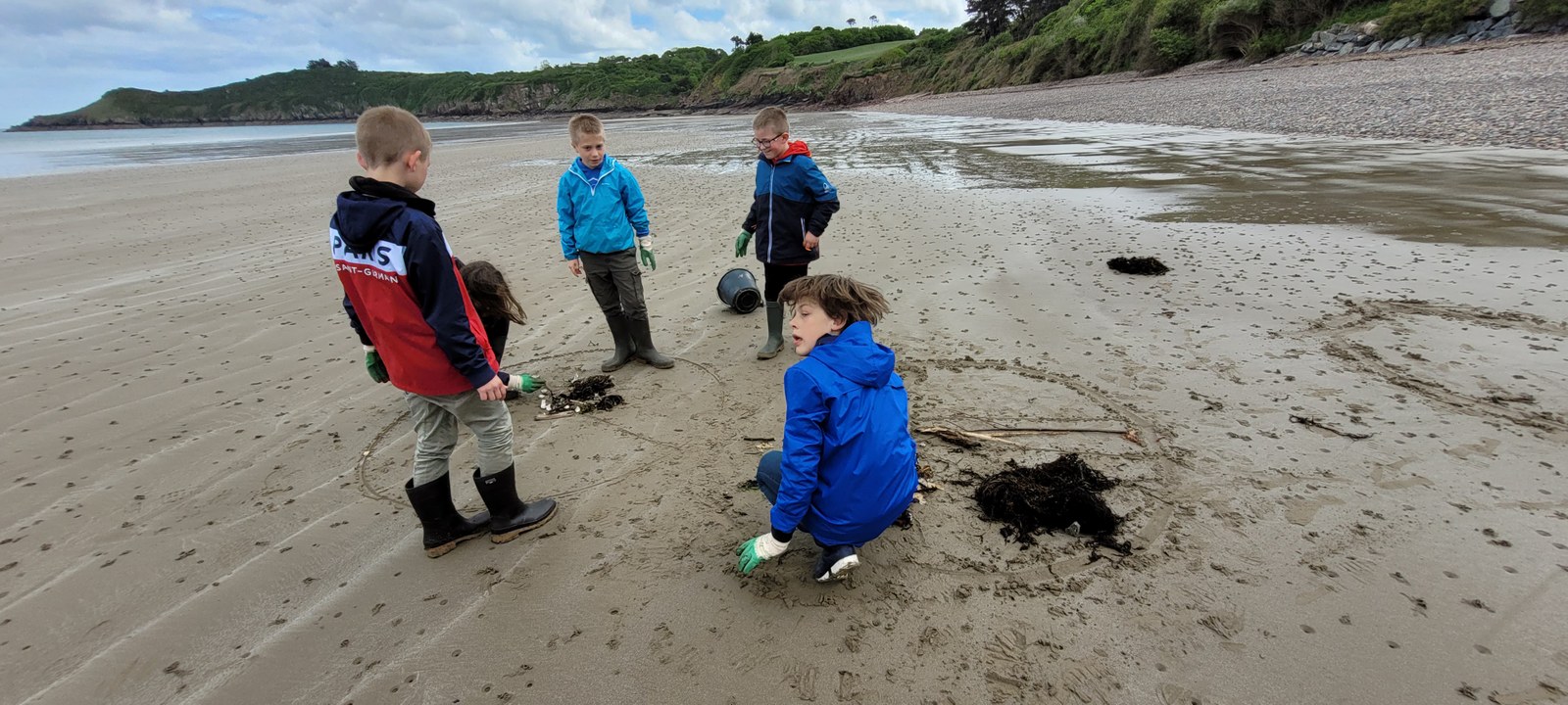 Lors de cet après-midi, les enfants ont découvert la "laisse de mer", c'est à dire les déchets laissés sur la plage par la marée. Ils ont trié les déchets (déchets animaux, végétaux, produits par l'homme...) Ils ont aussi évoqué le temps de dégradation des déchets.