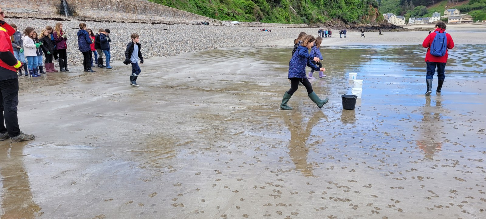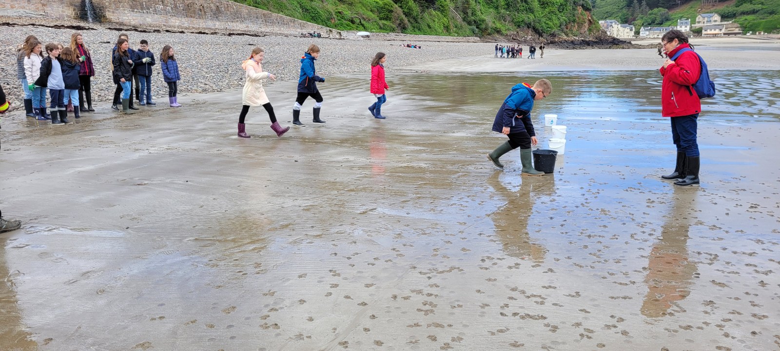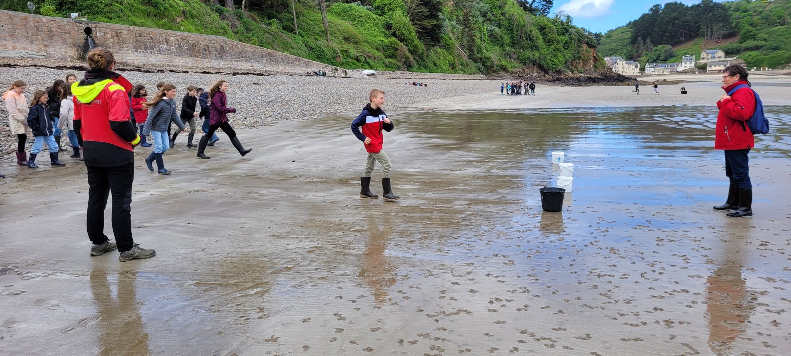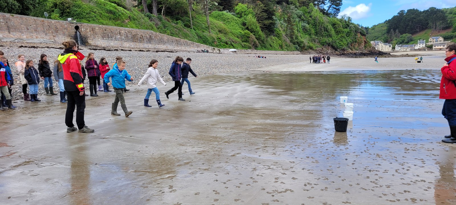 Lors de cet après-midi, les enfants ont découvert la "laisse de mer", c'est à dire les déchets laissés sur la plage par la marée. Ils ont trié les déchets (déchets animaux, végétaux, produits par l'homme...) Ils ont aussi évoqué le temps de dégradation des déchets.